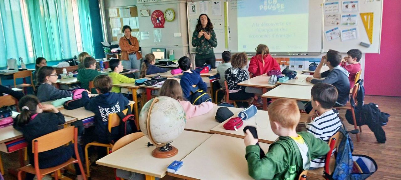A la découverte de l'énergie et des économies d'énergie avec le programme "Ecopousse" pour la classe de CM1, programme encadré par la CCPLCL de Lesneven.