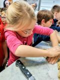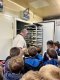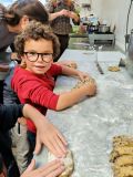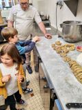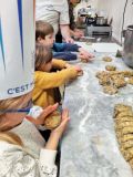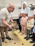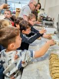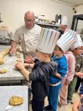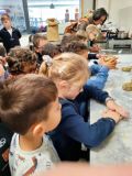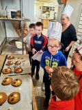 Aujourd'hui les classes de CE1 et CP ont été reçues par Monsieur Guillerm pour visiter son fournil, là où a lieu la fabrication du pain et son laboratoire, là où sont confectionnés les pâtisseries. Les élèves ont découvert les machines utilisées pour les différentes étapes de la fabrication du pain : du pétrin au four en passant par la chambre de pousse. Ensuite, chacun a pu réaliser un gros cookie gourmand. Assez grand pour être partagé !